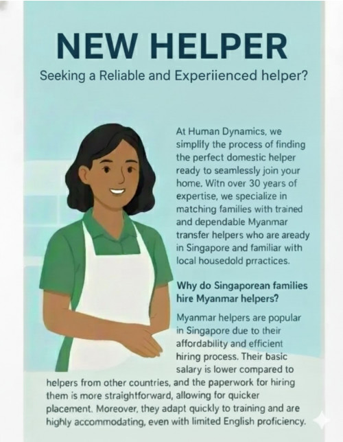 At Human Dynamics, we simplify the process of finding the perfect domestic helper ready to seamlessly join your home. With over 30 years of expertise, we specialize in matching families with trained and dependable Myanmar transfer helpers and familiar with local household practices.